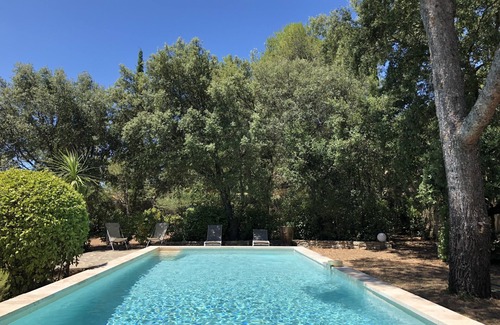 In a garrigue environment, 3kms from the center of Uzès, apartment in a house, on the ground floor, not overlooked, with independent entrance. The apartment faces the swimming pool (9. 5. x 4. 00) and the garden, which is somewhat separate from the owners' area. It is wooded with oaks, pines, olive trees.