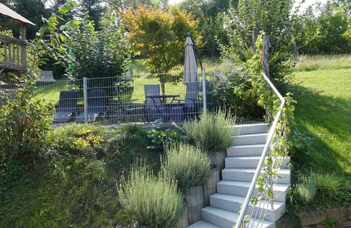 In Ortenaukreis, between the large district towns of Offenburg and Lahr, lies on the B3 the community Friesenheim with the district Oberweier. You can reach us via the A5 in the north connection point Offenburg and in the south via connection point Lahr. Our new on about 70 m² apartment is divided into a separate bedroom and a living-dining areas. A gallery in the living area offers space for another sleeping area with a double bed. The bathroom has a corner bath, round shower and toilet in modern style. Bed linen and towels are included in the price. Our two apartments have a separate entrance. A patio with garden furniture, loungers and a playground with a slide, swing, sandpit and trampoline invites you to linger outside. A parking space is available.
