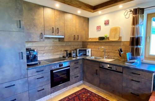 "Manuel", 3-room apartment 80 m2 on 1st floor. Fully renovated in 2021, very comfortable and tasteful furnishings: living/dining room with dining nook, satellite TV, international TV channels and flat screen. Exit to the balcony. 1 double bedroom with shower/WC, satellite TV, international TV channels and flat screen. Exit to the balcony. 1 double bedroom with 1 bed, 1 double bed, shower/WC, satellite TV, international TV channels and flat screen. Exit to the balcony. Open kitchen (oven, dishwasher, 4 ceramic glass hob hotplates, toaster, kettle, microwave, freezer, electric coffee machine). Wood heating, oil heating, underfloor heating. Parquet floors. Balcony 20 m2. Balcony furniture. Marvellous panoramic view of the mountains and the valley. Facilities: hair dryer. Please note: non-smokers only. Made-to-measure wooden furniture and high-quality materials were used in the renovation.