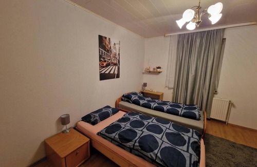 Comfortable accommodation in a quiet location close to the Hanover/Laatzen exhibition center. The rooms are bright, with single beds and free TV in several languages. Fully equipped kitchens with dishwasher, microwave and washing machine. Large garden with free barbecue area and seating. Winter garden with fireplace can be booked. Free private parking directly at the house. Shopping facilities (Lidl, Shell) 600 m away, bus stop 500 m, trade fair 700 m, restaurant 550 m. Ideal for fitters, business travelers and holidaymakers with high demands on comfort and self-catering.