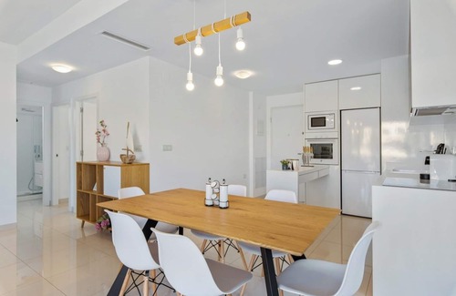 The holiday apartment Michael is located in Torre de la Horadada and impresses guests with its close proximity to the beach. The 118 m² property consists of a living room, a well-equipped kitchen, 3 bedrooms and 2 bathrooms as well as 2 additional toilets and can therefore accommodate 6 people. Additional amenities include high-speed Wi-Fi (suitable for video calls), a smart TV with streaming services and international channels, air conditioning as well as a washing machine.