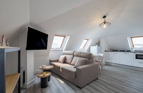 Situated in Cambados, the holiday apartment A Casita Do Muelle is just a short walk from the beach. The 42 m² property consists of a living room with a sofa bed for 2 people, a kitchen, 1 bedroom and 1 bathroom and can therefore accommodate 4 people. Additional amenities include high-speed Wi-Fi (suitable for video calls) with a dedicated workspace for home office, a TV as well as a washing machine. This accommodation does not offer: air conditioning.