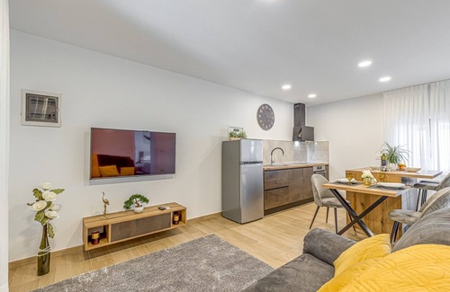 Apartment Nilda II offers a covered balcony, air conditioning, Wi -Fi, private parking, and a garden view. This brand's new and tastefully decorated apartment is situated on the first floor of a family house. It consists of a spacious living/dining room with a fully equipped kitchen, a double bedroom, and a bathroom with a shower. When you get the wish to enjoy the fresh village air, there is a covered balcony with a seating set available. Private parking is located in front of the house. The apartment is an ideal choice for couples that wish to escape from the city hustle and enjoy their vacations in a small village, yet close to the town.