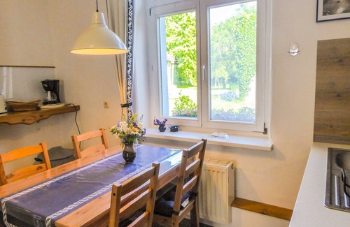 In a building of the early 19. Century The former village school, is today a quiet separate Apartment. It is completely renovated in 2013 and for the first time as a guest apartment - been equipped - ideal for two people. Bright spacious rooms, modern and comfortably furnished, are open all year. For maximum comfort of all guests, this apartment is consistently rented as a Non smoking apartment. For the same reason, we can not allow pets. In the living room a large couch invites you to feel good, the spacious bedroom has a double bed (180x200, separate mattresses) and can be darkened well. The kitchen overlooking the garden is equipped with modern facilities. It has a kitchenette with sink / hob, fridge freezer, coffee maker, kettle, toaster and microwave. In the bathroom is a tub with shower function. The apartment has a quiet spot in the garden with garden furniture and two sun loungers. If desired, a self brought along children travel bed can be placed in the bedroom. Internet WLAN is available free of charge.