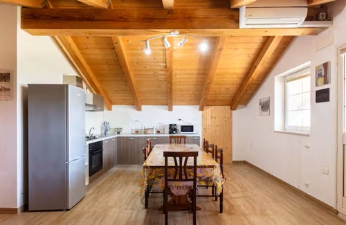 The holiday apartment Mansarda Nord, Rosa dei Venti is located in Brindisi and is perfect for an unforgettable holiday with your loved ones. The 2-storey property consists of a living room with a sofa bed for 2 people, a kitchen, 2 bedrooms and 1 bathroom as well as an additional toilet and can therefore accommodate 7 people. Additional amenities include high-speed Wi-Fi (suitable for video calls), a TV, air conditioning, a fan as well as a washing machine. Furthermore, a shared sauna is available on the property. A baby cot and a high chair are also available. This vacation rental features a private balcony for your evening relaxation.