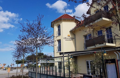The "Strandresidenz Karl Hagen" is only separated from the white sandy beach and the Baltic Sea by the dunes. It is located directly on the beach forecourt in the center of Karlshagen and at the entrance to the wide, white, sandy beach. The house was opened in July 2005. The apartments, mostly consisting of living room and bedroom, have the stylish character of the house appropriate equipment with high-quality furniture, comfortable beds, a state-of-the-art kitchenette and satellite TV with radio, DVD and CD. In addition, the house has Internet access via W-LAN for all guests (Telekom Hotspot). Due to the not yet sufficient bandwidth please use also the hotspot of the municipality Karlshagen! The majority of the apartments are equipped with a balcony and a fireplace and have a beautiful view of the Baltic Sea. In the basement is a bicycle storage room. Bicycles can be rented nearby. The final cleaning price includes the running costs (water, electricity, gas, heating), on request you can book bed linen and towels for 15 € / person / stay. Fresh rolls are available about 20 meters away at the bakery. This also offers complete breakfast sets from 3.75 € / person. In addition to the recreation offered by the beach and the apartments, there are extensive sports and leisure activities in the immediate vicinity. So you can undertake not only boat and fishing trips in the fish-rich Greifswalder Bodden and the Peenestrom but also charter tours around Usedom and the neighboring islands. For sports enthusiasts, wakeboarding and windsurfing are an interesting alternative to tennis, beach volleyball and horseback riding. Last but not least, a comprehensive art, culture and music offer completes the active and relaxing holiday. Information is available in our guest folders in the apartments for you.