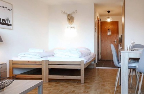 "Valaisia 53A", 1-room apartment 25 m2 on 5th floor. Partly renovated, beautiful furnishings: living/sleeping room with 1 pull-out bed (2 pers. 2 x 90 cm, length 190 cm), cable TV and radio. Exit to the balcony. Kitchenette in the entrance (2 hot plates, microwave, electric coffee machine, Capsules for coffee machine (nespresso) extra, raclette grill, fondue Set (cheese)). Bath/WC. Balcony, east facing position. Balcony furniture. Beautiful view of the mountains and the valley. Facilities: hair dryer. Internet (WiFi, free). Please note: non-smokers only.