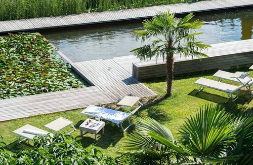 Start a beautiful vacation day on your large south-facing balcony, play a game of table tennis or prepare a delicious meal on the grill. In the sunny communal garden, nature & bathing lovers will enjoy the newly designed swimming pond with children's paddling pool and outdoor shower. Sunbathe on the sun loungers equipped with umbrellas while the children play in the large playground with miniature vehicle park, large trampoline, swings, seesaws, sandbox or table soccer. The property also includes a light-filled communal indoor swimming pool (5x10 m) with access to the Mediterranean lawn and a ping pong room. A garden pavilion, ideal for social gatherings, completes the ensemble.