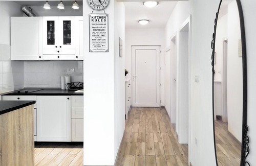 The apartment has a well-equipped kitchen, 55" TV (with free Netflix), free WiFi, air-condition, it's bright and sunny and it's placed on the quiet street.