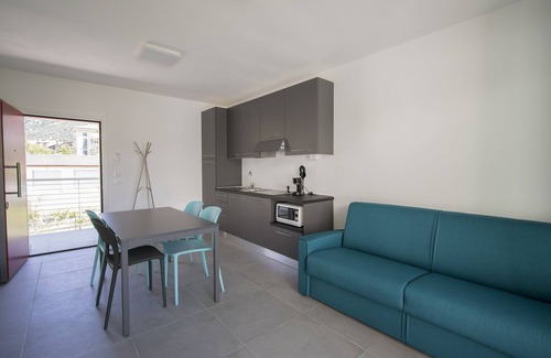 They are all composed of a spacious bedroom, a closet with washing machine, a bathroom with a large shower, a living room with kitchenette and a sofa that can be transformed into a double bed and a balcony if necessary.