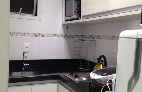 Apartment with one bedroom, living room, kitchen complete with several appliances, emergency light and bathroom with blindex.