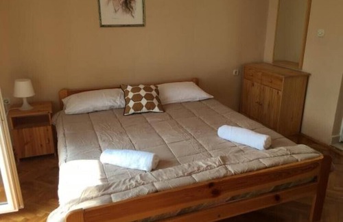 Apartment contains one bedroom, equipped with double bed and one single bed, fully equipped kitchen, balcony with sea view, and outdoor furniture, and bathroom with shower and toilette. Next to the house is private parking, which is free of charge for the guests of the house. Apartment is equipped with wi fi AC.