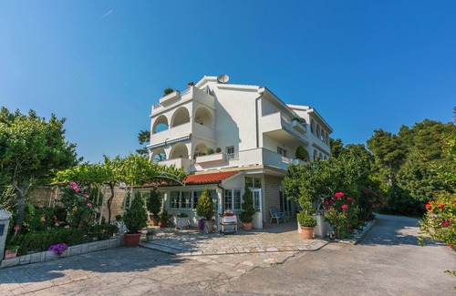 Accommodation Vila Antula offers space up to 6 guests. The picture perfect nature and sandy beach and concrete slabs beaches are 200 m away. Share the photos of your well-deserved vacation using Internet available for your use. No crowds, no fixed mealtimes and no overcrowded terraces - awake your inner chef using available Grill and indulge in delicious local food. Fill your evenings with lots of laughter and fun whilst sipping local drink(s) on 15 m2 balcony. Nice little added bonus is view of Sea, green area and garden.