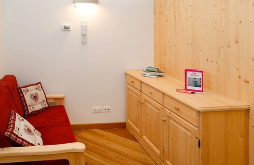 "App. A - Cjase Fravins", 2-room apartment 32 m2, on the upper ground floor. Renovated, practical and wooden furniture furnishings: living/dining room with dining nook, kitchen corner and TV. 1 double bedroom with shower/bidet/WC. Open kitchen (4 induction hot plates, kettle, microwave, electric coffee machine). Gas heating. Wooden floors. Facilities: baby cot. Internet (WiFi, free). Please note: non-smoking house. Maximum 1 pet/ dog allowed. No mandatory extra charges to be paid on-site. Bedlinen, towels, final cleaning and all energy costs are included. IT030067A19XSONONN
