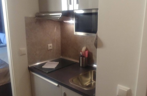 This 1-bedroom, 1-bathroom rental features a living room and a sofa bed. Bathroom amenities include a hair dryer, towels, and toilet paper. The kitchenette is equipped with a stovetop and a refrigerator, as well as a coffee maker, an electric kettle, and a microwave. And there is a laundromat nearby so you can pack a bit lighter.