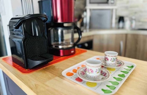 The kitchen is equipped with an oven, a stovetop, and a refrigerator, as well as a coffee maker, an electric kettle, and a microwave. Bathroom amenities include a hair dryer, towels, and toilet paper. And there's access to laundry facilities, so you can even pack a bit lighter. Other amenities include bed sheets, an ironing board, air conditioning, and heating.