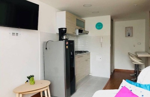 It is an apart-hotel built with guests' comfort in mind. Apartment with a very well equipped kitchen, it has 2 rooms with a double bed and a double nest. This increases the capacity 4 double beds and 1 sofa bed. You will have total independence in your apartment with the opportunity to rent different apartments for large groups The fully equipped apartment. Close to points of interest in the city. Commercial establishments and transmilenio station one block away.