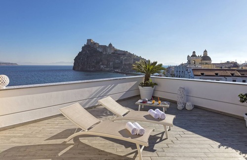 A brand-new, elegant and delightful apartment in typical Mediterranean style, housed in an ancient building in Ischia’s most beautiful historical village, directly overlooking the Aragonese Castle, symbol of Ischia, and the islands in the Bay of Naples.
