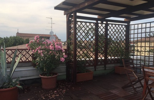 The apartment is located on the fourth floor of a condominium. In the rooftop, there is a large terrace completely available furnished with table, deck chairs and plants. There are 3 bedrooms (one with a double bed, one with 2 singles beds and the last one with a sofa bed). There is a kitchen with all the stuff you need (pots, kettle, toaster, dishwasher, microwave oven) a living room with a TV and free wi-fi. One bathroom with a bath, shower, and a washing machine.