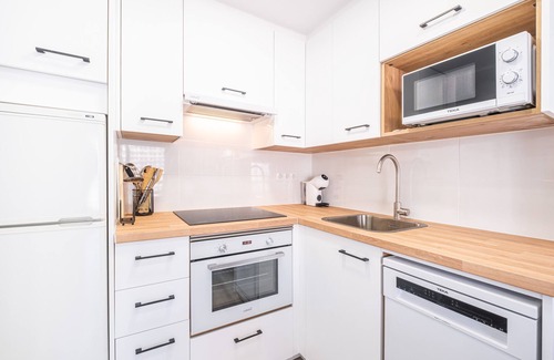 The American induction kitchen is equipped with fridge, microwave, oven, freezer, dishwasher, crockery/cutlery, kitchen utensils, Dolce Gusto coffee machine, toaster, water kettle and juicer.