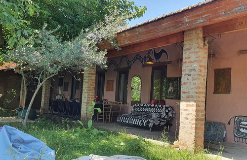 Vintage Art House in the beautiful village on the way to Signagi for summer holiday retreats, professional or friendly gatherings. Enjoy comfortably furnished rooms and charming outdoor, lawn, roofed veranda and magnificent views over the wide ravines of Kakheti. Think of private BBQ party and bonfire gatherings. Art activities, set Georgian dinners and wine tastings can be arranged upon request.