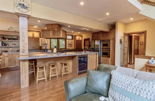 Head upstairs to the main level and be wowed by the open kitchen. This fully stocked kitchen is ready for you to get creative with the local fresh ingredients you will find at the various farmers markets and roadside stands. The kitchen has a double oven, six burner cooktop, plenty of space in the oversized refrigerator and freezer. With the large center island there is room for people to gather and assist the cook! For those who would rather stay out of the kitchen you can relax in the great room and still be a part of the action. Right off the dining area is a spacious screened in porch that leads out to the deck. All great places to relax and take in the views.
