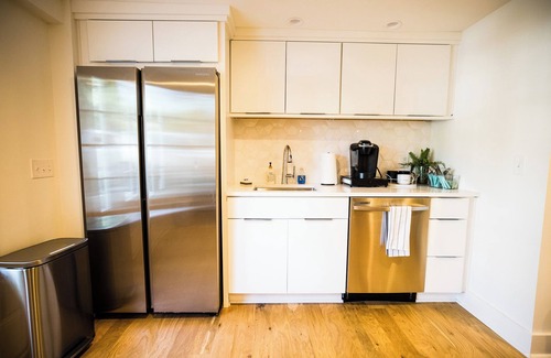 Best location in Nashville on a quiet, safe and beautiful walkable street. Close to downtown, midtown, Belmont, Vanderbilt, and Lipscomb universities, major area hospitals and interstates. Newly built, designed and constructed by owner who is a luxury home developer. 1,600 square feet, sleeps 10+ with 3 bedrooms and 2 bathrooms, 2 kitchenettes, a private courtyard, 2 off street parking spaces, a washer/dryer, and Hot Tub!