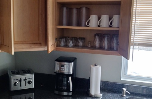 Let me mention that there is heat and central air at this property (look for the smart touch screen thermostat on the wall in the hallway) Adjust to your preference. The full kitchen boasts granite surface counter gas range microwave 4 slice toaster air fryer crockpot Coffee pot with supplied coffee French door fridge to make unpacking easy and for those after meal quick clean ups there is a double dishwasher pots pans in one everything else in the other (dish soaps are supplied).