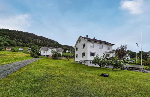 This spacious holiday home by the water offers you a wonderful opportunity to relax and experience the nature of Western Norway up close. Be enchanted by the unique fjord landscape and start your excursions right on the doorstep. The interior is characterised by traditional style with rustic furniture, cosy carpets and soft seating in several living areas. Use the dining room with panoramic views for communal meals or spend quiet evenings in the separate living room. The view from the large windows brings nature right into the house.