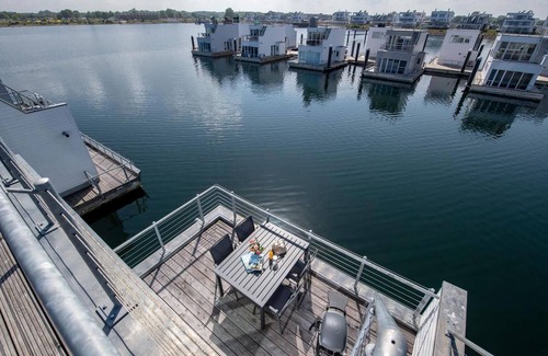 An unforgettable holiday experience is guaranteed, as this houseboat is moored at the jetty in the Baltic Sea resort of Olpenitz and offers the perfect combination of rustic boat flair surrounded by water and a luxurious holiday home on land.