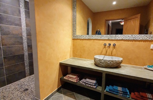 For rent, 4 pretty bedrooms on the ground floor: a suite with bathroom, two bedrooms with a double bed, walk-in shower, a children's bedroom with 2 single beds + cot for babies.