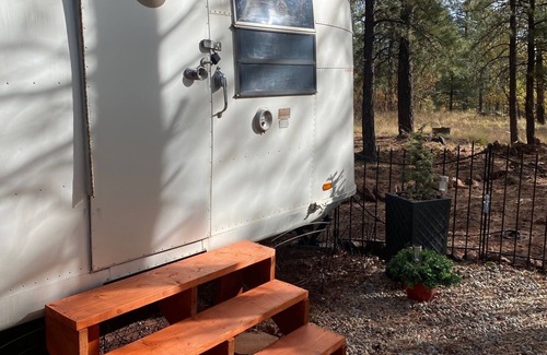 Welcome to Back in Time Retreat. We hope you enjoy your stay here as much as we do. We love this little retreat in the woods on the cliff. It was a challenge to get this little gem in this beautiful location but well worth it. We started out with the vision as we looked up at the cliff and realized that beautiful spot was unutilized. With a friend, a backhoe and determination we were able to get the road up and through the cliff. From there it was a matter of establishing the water, electricity, and hard work to get this 1968 Avion travel trailer remodeled. The experience is breath taking with view of the San Francisco Peaks and other mountain ranges with a feeling of piece and alone in the woods. It is located close to Historic route 66 with views of train going through. Keep in mind there is train noise and is a part of the experience.