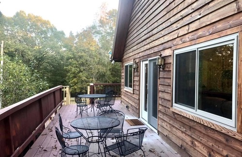 This 4 bedroom/3 bath cabin is spacious and comfortable for a group of friends or a couple of families traveling together!