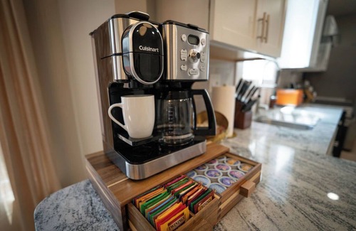 * Keurig drip/pod coffee maker - Amazon ground coffee, coffee pods, tea bags, sugar, splenda, and creamer provided.