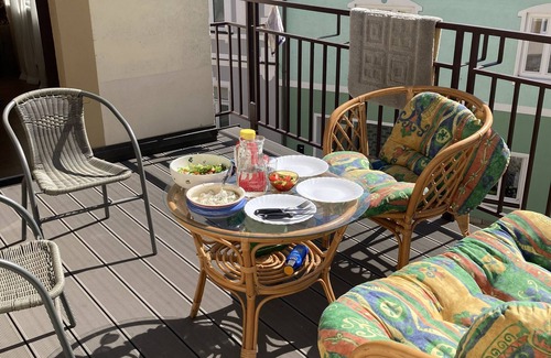 Über der ehemaligen Bäckerei des Großvaters trifft mid-century Charme auf moderne Annehmlichkeiten! Große Schlafzimmer und extra Matratzen, Schreibtische, voll ausgestattete Küche und Balkon mit Gasgriller stehen für sie bereit.