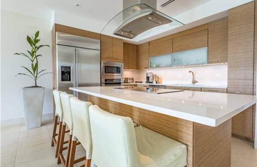 -Fully equipped with high-end appliances kitchen offers a counter with seating for 4 and the dining table seats 8.