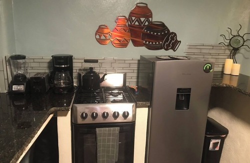 Our Casita is perfect for 2, with a queen bed and a new kitchenette, with granite counters. it has a large bathroom and is located just a few yards below the villa.