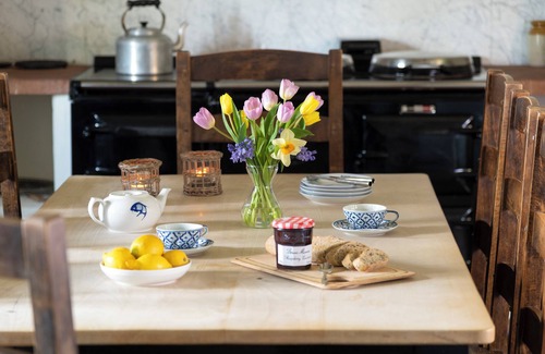 Bank Barn - Wreay consists of a kitchen with dining seating, Aga-style oven (winter months only), electric oven, gas hob, dishwasher, fridge/freezer, wine cooler, coffee maker, microwave, kettle, toaster, utility, and a dining room with seating for eight. Sitting room with Smart TV and woodburning stove, and a cloakroom. On the lower ground-floor, there is a snug with Smart TV, utility with washing machine and tumble dryer, and a bathroom. The bedrooms consist of two super-king-size with en-suites and two twins (only one twin bedroom has a zip/link, can be super-king-size upon request). Travel cot and highchair available. Enclosed rear multi-level garden with patio, lawn, furniture, and off-road parking. Sorry, no pets and no smoking. Note: No stag/hen parties. Note: Maximum occupancy is eight guests and one baby under twelve months. Note: No caravans are allowed. Note: External CCTV cameras are operational. Note: No EV charging using a regular plug into the property. Note: Check-in from 5 pm, check-out by 9:30 am. Note: There is a Good Housekeeping bond of 350GBP.