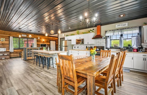 ★ Heading inside, you will find a custom slide taking you down from the upper level right down to the kitchen! You can also take the stairs if you wish. You'll find a beautiful barn loft interior with over 5,000 square feet to spread out. Most material and furniture has been sourced and created from local Amish reclaimed barnwood.