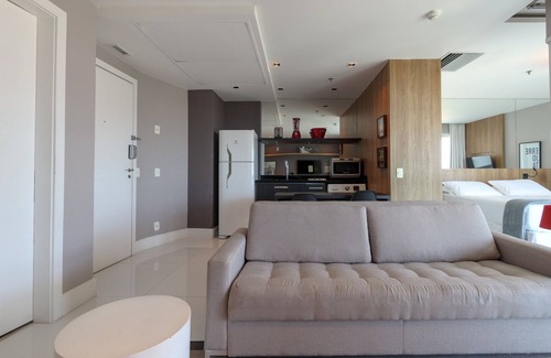 Incredible bedroom and living room apartment. Located in the Sheraton Hotel complex, overlooking the sea, in one of the best locations on Barra da Tijuca beach. Close to shops, bars and restaurants and less than 5 minutes walk from the beach. Cozy and modern, perfect for spending your holidays. Holds 4 people and is suitable for children. It has a bathroom, fully equipped kitchen, plus free wifi and air conditioning.