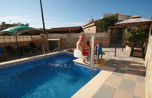 Dreamlike, new, appropriate for wheel chair, luxury, natural stone summer cottage by the sea. Common pool arra private jacuzzi and lifter possibly.