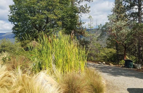 We're 1.5 miles to Bass Lake & 24 miles to Yosemite National Park. The property feels warm & welcoming with wood walls & brick fireplace . The majestic views are magnificent! Look toward the Peckinpah Mountain range at sunset & see the Milky Way framed by towering Ponerosa Pines.