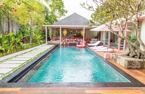 Bali Chic and modern, a carefully designed villa with a sense of tranquility envelops you as you enter this haven. It is one of 4 villas (with a total of 17 bedrooms) that may be rented altogether or individually. Ideal for gatherings and get togethers.
