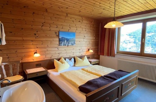 "Baumannerhof", 6-room apartment 150 m2 on 2 levels. Simple and rustic furnishings: dining room with satellite TV. Kitchen (oven, dishwasher, 4 ceramic glass hob hotplates, kettle, electric coffee machine) with small dining table. Upper floor: 4 double bedrooms, each room with hand-basin. 1 room with 1 bed. 1 double bedroom with 1 sofabed. Exit to the balcony. Sep. WC, bath/shower/WC. Heating. Carpet. Balcony. Balcony furniture. Beautiful panoramic view. Facilities: children's high chair, baby cot. Internet (WiFi, free). Please note: non-smoking house. There is another apartment on the ground floor that is used by other guests.
