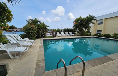 Bay View #7 is a 2-bed, 3.5-bath waterfront townhouse in a gated community, in Rodney Bay and close to the beach, restaurants, shopping, and nightlife.