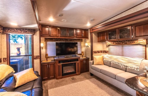 You won’t forget your time in this romantic, memorable place. A totally enclosed area with a tall privacy fence. An outdoor fire pit surrounded with adirondack chairs and of course a couple of hammocks. Completely covered outdoor living room with smart tv and kitchen and beautiful bath with high ceilings and an arch window.