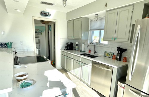 3 minute walk to the beach or bayside fishing pier! Experience unobstructed views of gorgeous sunsets. Hear the waves from the deck under a canopy of stars. Westend restaurants and marina are a short drive away. This property backs up against the nature preserve