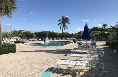 This 2 bedroom 2 bath villa is a conch throw from the beach and swimming pool! The villa has a queen size bed in the the first bedroom and 2 full size beds in the second bedroom. One bedroom has a shower and the other is a shower and tub bathroom. A fully equipped kitchen and BBQ grill. The villa is located right around the corner from the laundry facility, so fresh water and a laundromat are at your fingertips. The grocery store is just a few minutes away by foot, or a few seconds away by golf cart!