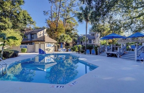 No, this Palmetto Dunes cottage does not have a swimming pool. Check the Facility Overview section for details about the pool and other available facilities.