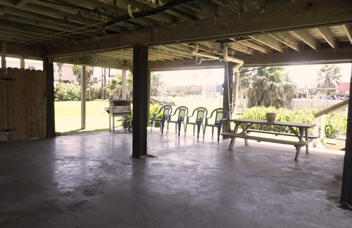 This charming beach side cottage sits on a lot just 1/2 a block from the beach. I have had the great fortune to have owned the house for the past 30 years. We have always walked to the beach, never have taken a car. We are that close. Our street actually dead ends at the beach. So it feels very private and great for kids because there is very little traffic and no streets to cross to get to the water. We are in the Palm Beach Subdivision which is one of the Islands older beach side communities. There are many beautiful new homes in our sub division but doted through out are the original beach cottages built in the 1960's with lots of Old Galveston charm. We are one of those original cottages. We are on the west end of the island only 8 miles from the main drag. Only a 10 minute ride to all the restaurants and attractions but far enough away to enjoy a quiet retreat with beautiful (not so crowded) beaches. The house has a large front balcony with a view of the water which provides lots of outdoor space for sun bathing, star gazing, and of course the ocean view. There is always plenty of shade and a cool breeze on the first level perfect for outdoor barbecues and just relaxing. This house is a two bedroom, one bath. But there is also a downstairs shower with hot and cold water. Upstairs you'll find a kitchen with plenty of room, lots of seating and a view of the water. A spacious spot for everyone to hang out. And high ceilings make the rooms feel even larger. The kitchen has french doors that open on to the front balcony. Of course the kitchen is fully furnished with everything you will need for your family get away. The two bedrooms each have a queen size bed and the large living room has 3 day beds for extra quests. This house comfortably accommodates 2 couples and 3 or 4 children. Sheets and towels are included .We are pet friendly and only a $25.00 fee for each pet per stay. You will enjoy this house. It is very comfortable. It has character and charm and best of all it is close to the water. We would love for you to stay.
